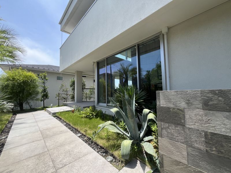 建物に合わせてアレンジされた植栽。一体感があります。