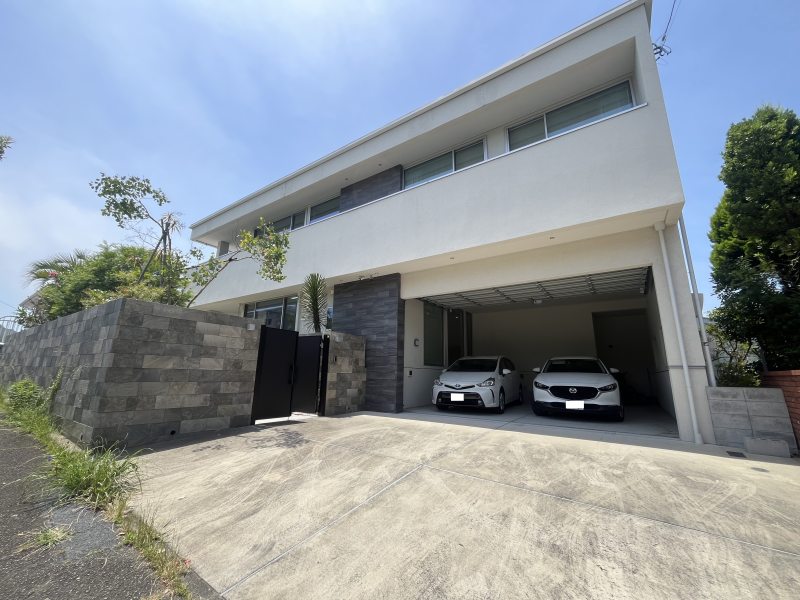 シャッター付のガレージに2台、外にも3台程駐車できます(車種によります)
