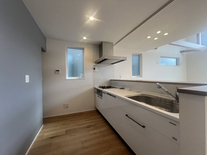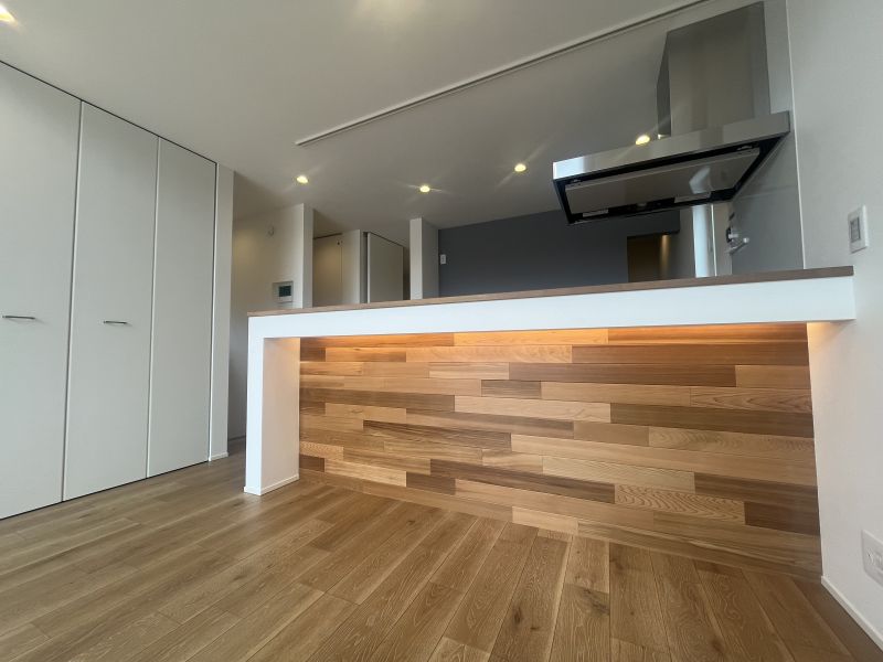 キッチンのダイニング側は、こんな素敵なデザインとライティングに