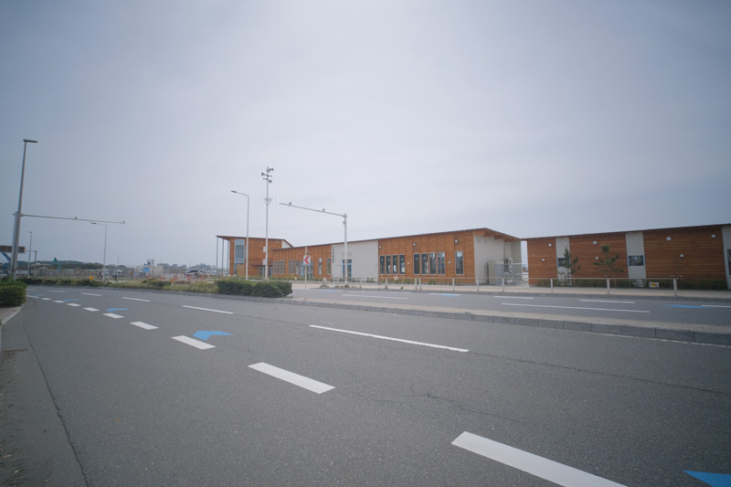 目の前には新しくなった鵠沼海浜公園の建物が連なっています。