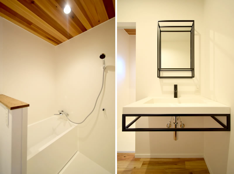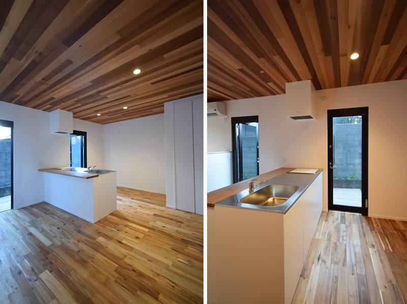自然素材をふんだんに用いた室内の空気は澄み渡ります~『鵠沼ベース』Aはまさに無垢のアカシヤ床材、そして珪藻土の壁、天井にはレッドシダーを貼るリゾート色あふれる空間。間取りは玄関とオープンにつながる土間リビング。ここではマリンギアやオウトドアグッズ、或いはバイクガレージとして使うことだって可能。鵠沼海岸まで徒歩4分で海まで散歩、マリンスポーツ、湘南エンジョイライフ充実の立地です。