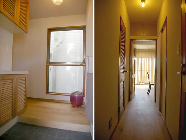 左:玄関入るとライトコートから明るい光が差し込みます。右:自然素材に包まれた風がそよぐお部屋です。