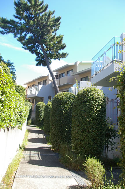 ゆったりと佇む東海岸ハイツは低層のヴィンテージマンションの趣。海まで250㍍の距離