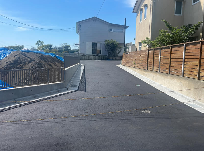 基本的には当土地に暮らす方しか通らない道路、幅も4.5メートルあり、広々としています。