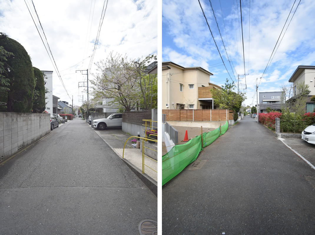 どちらも前面道路です。風致地区ならではの自然を大切にした街並みが広がっています。