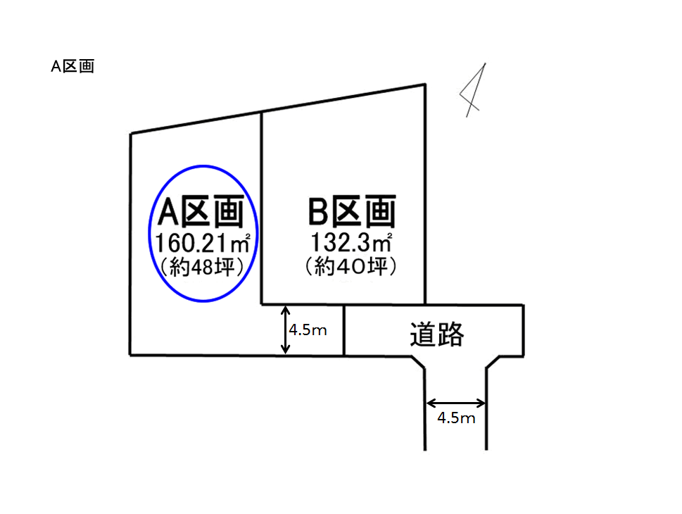 南東側を撮影。こちらの土地はやや縦長の約48坪